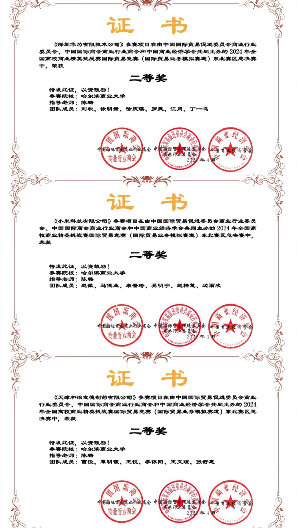 近日,2024年第十四届全国高校商业精英挑战赛国际贸易竞赛(国际贸易业务模拟赛道)东北赛区总决赛落下帷幕。由外语学院陈璐老师指导的商务英语专业三支学生代表队经过线上知识赛的重重选拔,在东北赛区总决赛激烈的竞争中脱颖而出,均荣获东北赛区总决赛二等奖,成功晋级国赛。同时,由于组织得当,外语学院为我校赢得“最佳组织奖”的殊荣。
