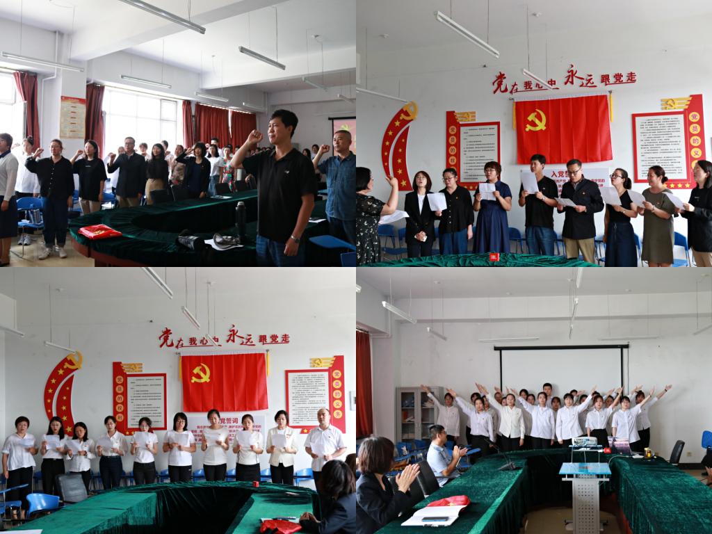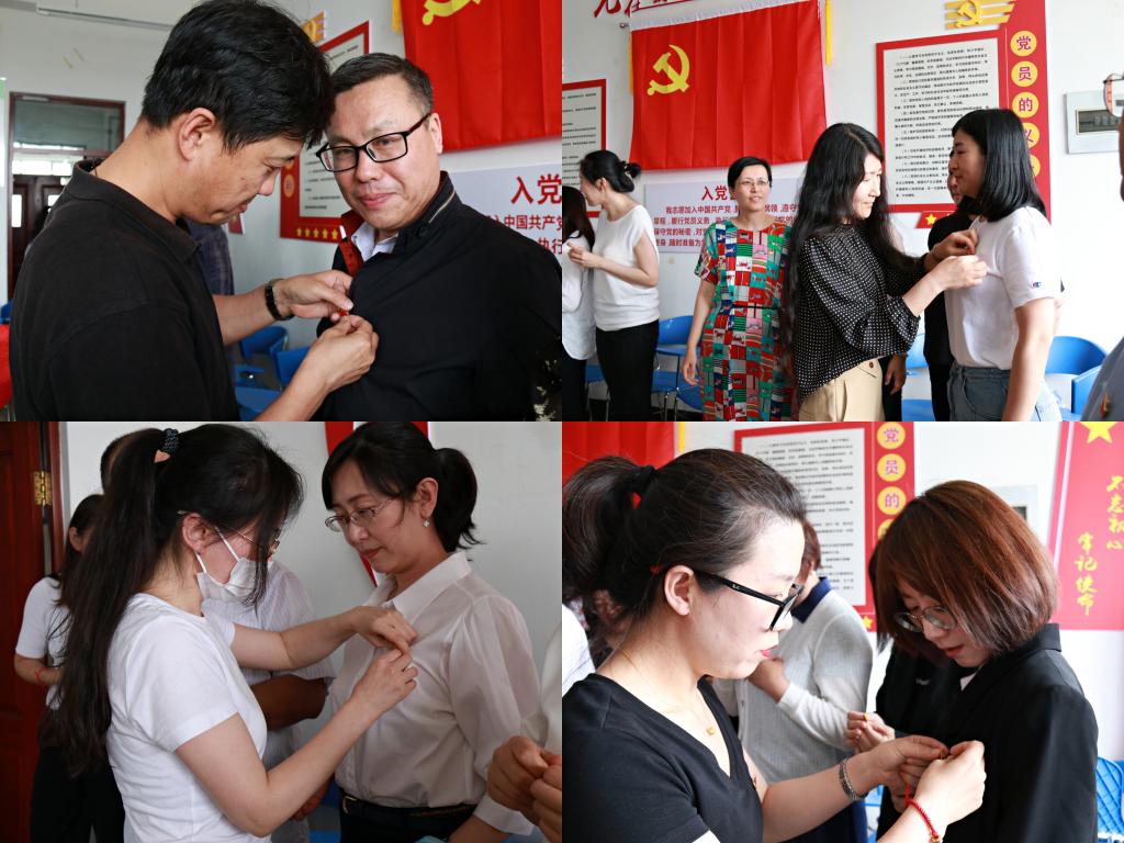 商务英语及小语种教工党支部书记张泳老师带领全体师生党员重温入党誓词,表达了党员们忠于党、守初心、践使命的坚定决心。各支部书记为党员佩戴党徽。各党支部以嘹亮的歌声、优美的旋律讴歌党的百年丰功伟绩,英语教工党支部、公共英语第一教工党支部的《唱支山歌给党听》、商务英语教工党支部的《游击队之歌》、公共英语第二教工党支部的《没有共产党就没有新中国》、学生党支部的《党旗飘扬的方向》等一首首包含时代精神、慷慨激昂的歌曲在学院回响,一首首红歌唱出了外语学院师生党员对党的真挚情感,谱写了新时代永恒的赞歌。
