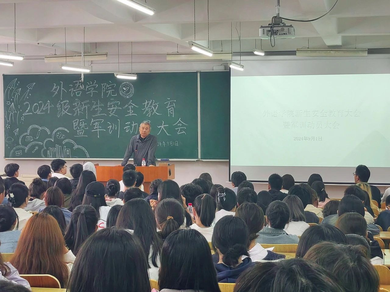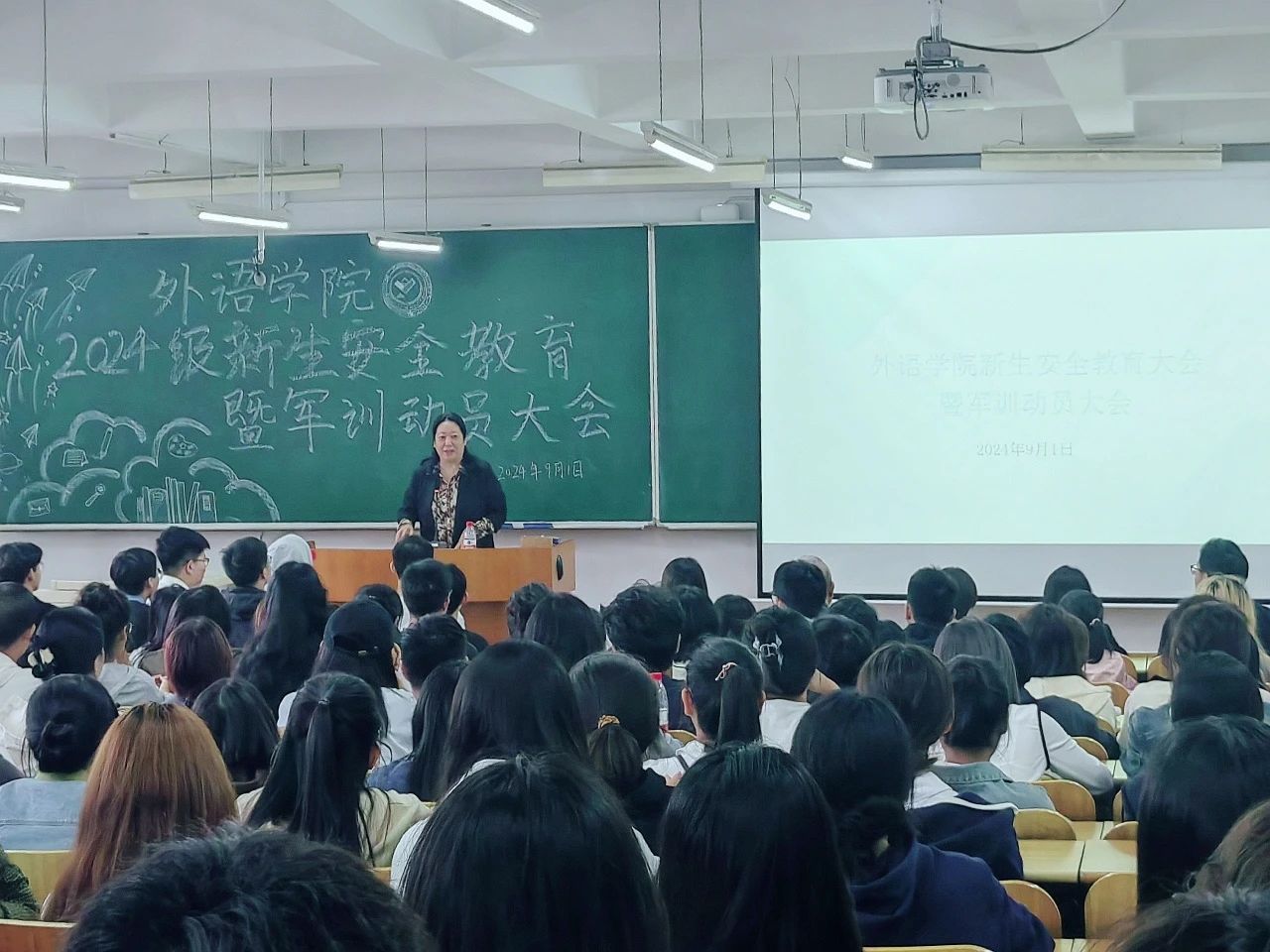 启航新旅程,怀抱新梦想。2024年9月1日,外语学院召开2024级新生安全教育暨军训动员大会。外语学院院长魏薇,外语学院党委副书记孟宪弢,外语学院团委副书记朱晓慧,2023级辅导员宋钧天,以及2024级全体新生参加此次会议。会议由2024级新生辅导员孙志鸿主持。
