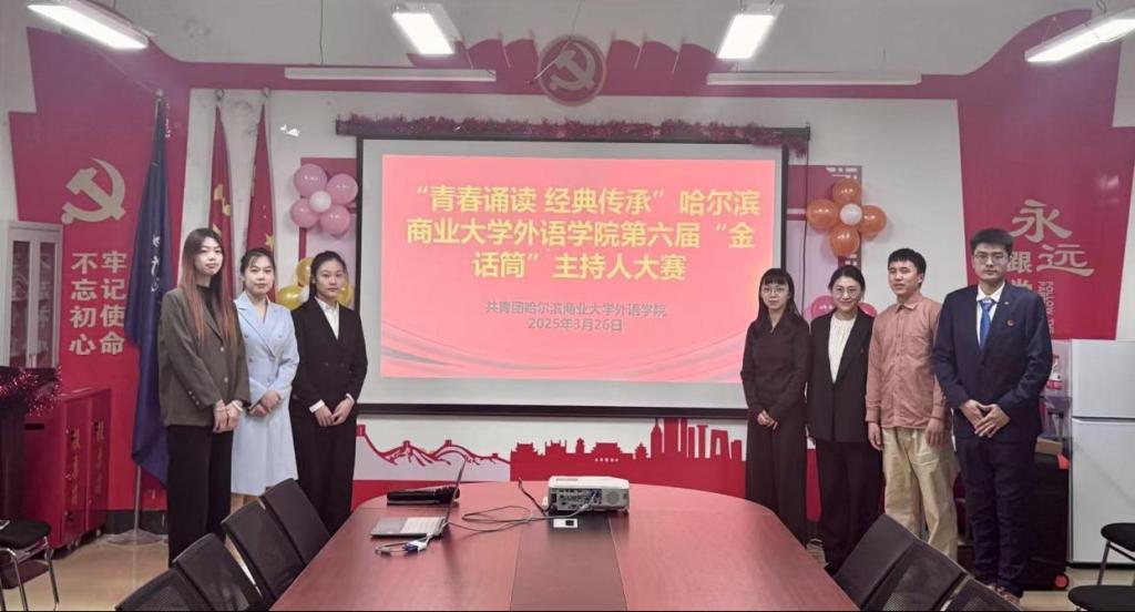 为提升外语学院学生的语言表达能力,推动学生成长为具有文化底蕴专业素养和创新精神的人才,哈商大外语学院团委于3月26日开展以“青春诵读,经典传承”为主题的第六届金话筒主持人大赛院决赛。春风沉醉,莫负春光好;振翅高飞,朗诵正当时!