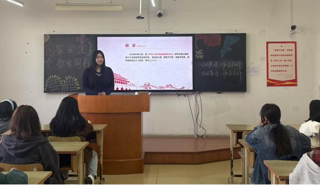 我院各基层团支部积极响应学院团委号召,精心开展“国家安全 青春挺膺”主题团日活动。团支书组织同学们观看学习国家安全教育专题片,以影片展示典型危害国家安全案例,引导学生深刻认识到全民共同守护国家安全的重要性。从网络空间的暗流涌动,到生物安全的潜在风险;从国土主权的寸土必争,到文化安全的润物无声,外语学院学子深刻体悟到“国家安全无小事,须臾不可放松”的深刻内涵。