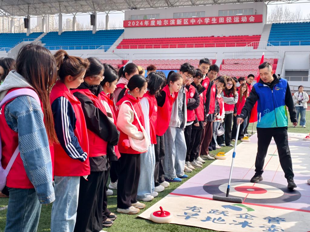 在各个学院的领队抽签后,同学们到达学院赛道,由教练为大家仔细讲解比赛规则以及注意事项。同学们从未接触过冰壶,脸上洋溢着兴奋与好奇,对这项运动跃跃欲试。在正式比赛前,每位参赛选手都尝试推壶,感受冰壶滑动,练习推壶动作,为正式比赛做好准备。