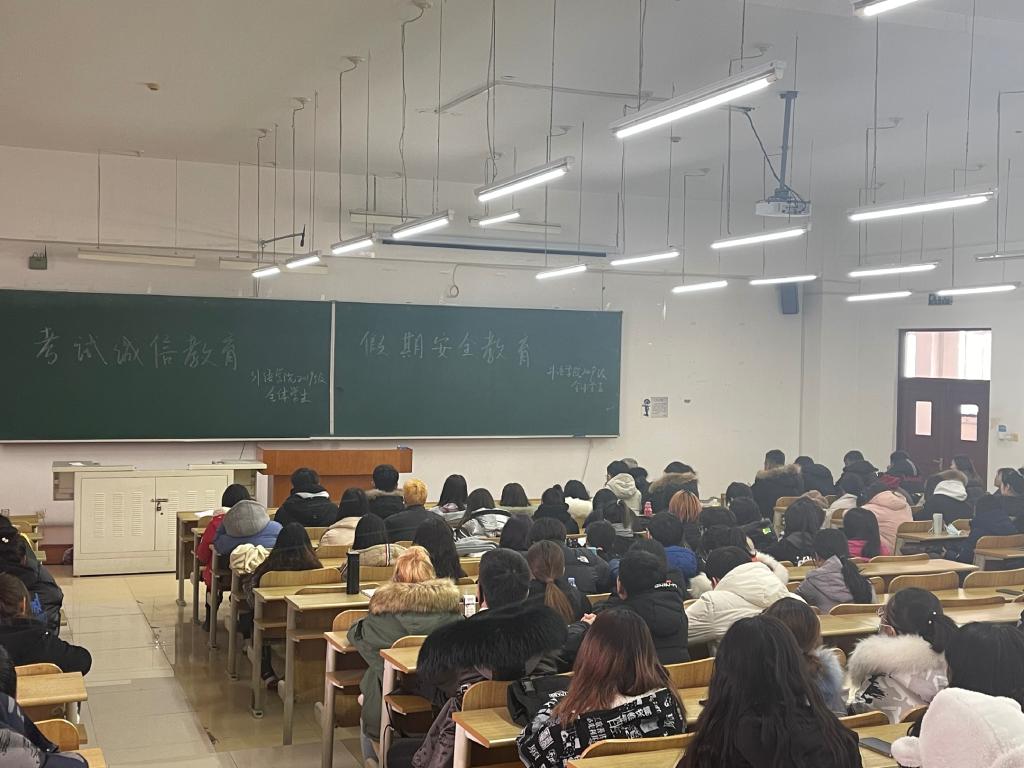 12月15日外语学院在4206召开2019级诚信考试暨假期安全教育大会,会议由外语学院2019级辅导员孙志鸿老师主持,学院党委副书记孟宪弢老师莅临会议并进行了讲话,2019级全体同学参加会议。