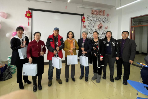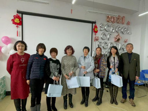 首先,学院对具有三十年以上教龄退休老教师潘尔艳、刘云江、王丽辉、李郁、王玲进行表彰,而后又为依然在岗的教龄三十年以上的宋力英、贺春英、张琳、王晓环、徐顺凤教师进行表彰,颁发纪念奖杯和礼品。魏薇院长在颁奖典礼上说,多年来,学院涌现出了一大批战斗在教学一线,认真贯彻党的教育方针,为人师表,爱岗敬业,为教育事业付出辛勤劳动,为学校的建设发展无私贡献的老教师。要学习他们的奉献精神,进一步增强广大教职工的光荣感、使命感和责任感。受奖励老师们表示,感谢学院领导的挂念,感谢同事们的支持和认可。作为老教师,有责任、有义务为学校发展做出更大的贡献。在颁奖典礼过后学院举办了新春联欢,老师们不仅准备了精彩的节目,还有精彩的游戏环节。整场联欢会充满温情,欢歌笑语,喜气洋洋。