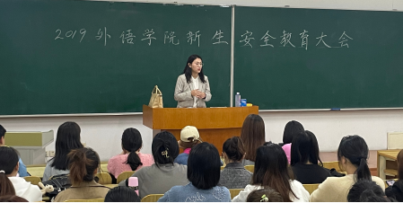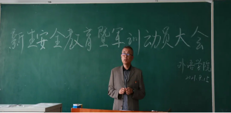 9月15日上午,外语学院在0424教室举行新生安全教育暨军训动员大会,外语学院党委副书记孟宪弢、2021级辅导员朱晓慧、2019级专升本辅导员孙志鸿、2021级全体新生参加会议。
