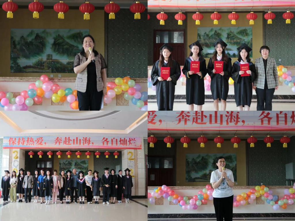 教师代表孙璐在发言中表示,作为新一代青年,既要有“穷则独善其身”的道德修养,又要有“达则兼济天下”的理想抱负,在未来的人生中以青春之我,谱写时代之歌。在校生代表王闯向即将离开母校、迈向人生新阶段的学长学姐们表达最衷心的祝愿,未来也会像他们一样秉承“求真至善,修德允能”的精神品质,为学校的发展进步贡献青春和力量。