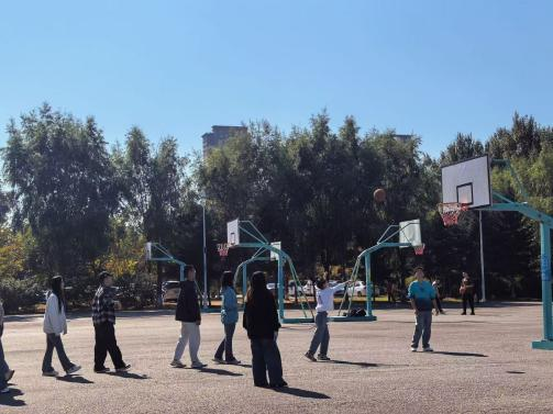在定点投篮比赛中,同学们手握篮球,全神贯注,轻轻一跃,篮网与篮筐发出清脆的响声,仿佛在喝彩。