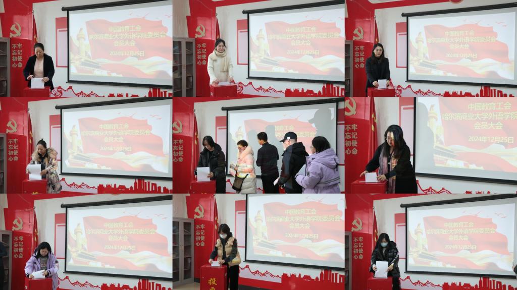 议由学院党委书记郝钢同2024年12月25日,外语学院在主楼0505会议室召开2024年度工会会员大会,开展工会委员会换届选举工作。外语学院全体教职工参加大会,会志主持。