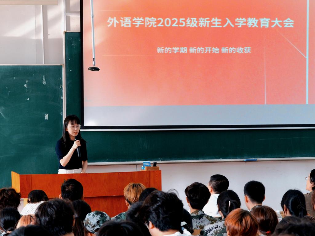 此次入学教育大会的召开,不仅为2025级新生的大学生活指明了方向,也进一步凝聚了学院育人共识。相信新同学们必将以昂扬向上的精神面貌,在外语学院书写属于自己的精彩篇章,从容启航,心向未来。
